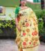 Handpainted Yellow Cotton Saree with Red Floral Motifs | With BP