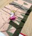 Handloom Cotton Saree in Off-White with Green Tribal Motifs & Border | With BP