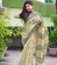 Handloom Cotton Saree in Off-White with Green Tribal Motifs & Border | With BP