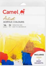 Camel Acrylic Color Box – 9ml Tubes, 14 Shades, Including Gold & Deep Magenta Colour