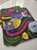Add a touch of mythical charm to your workspace with our Mexican-art inspired sitting cat. Inspired by the vibrant patterns and spiritual energy of traditional folk art, this design features a watchful, spirited kitty surrounded by bold floral swirls—making your desk feel less like an office and more like a studio.