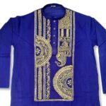 Stylish cotton Punjabi with fabric design detailing, offering comfort and elegance. Available in sizes 38–44, perfect for puja, casual outings, and festive wear.