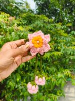 Handmade Crochet Lotus Hair Clip – Pink Floral Barrette with Dangling Lotus Buds