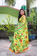 Add a pop of color to your ethnic collection with this Handpainted Light Green Cotton Saree, beautifully decorated with striking red floral motifs. The refreshing green base blends perfectly with the vibrant red flowers, creating a timeless contrast that exudes elegance.